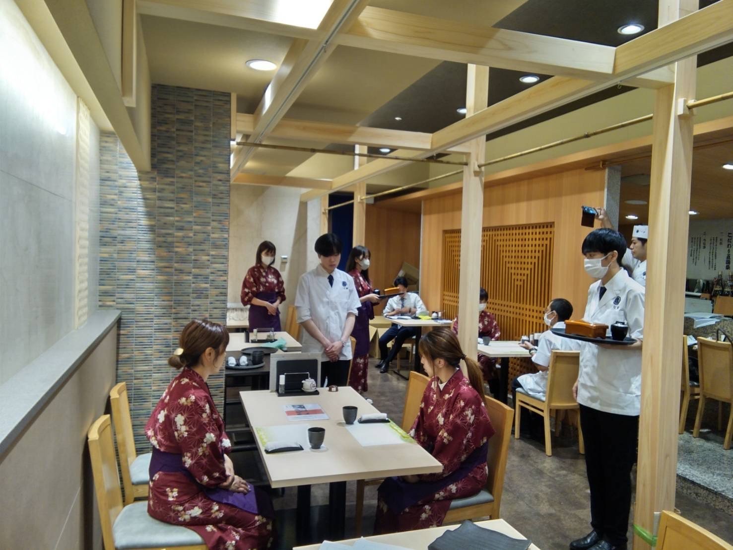 早速入社した新しい仲間が、お客さまをお迎えするために専門講師による接客講習を受けてトレーニング中です!